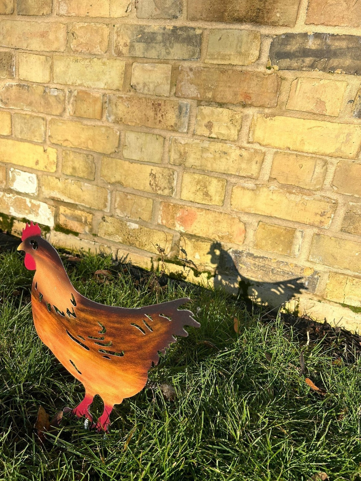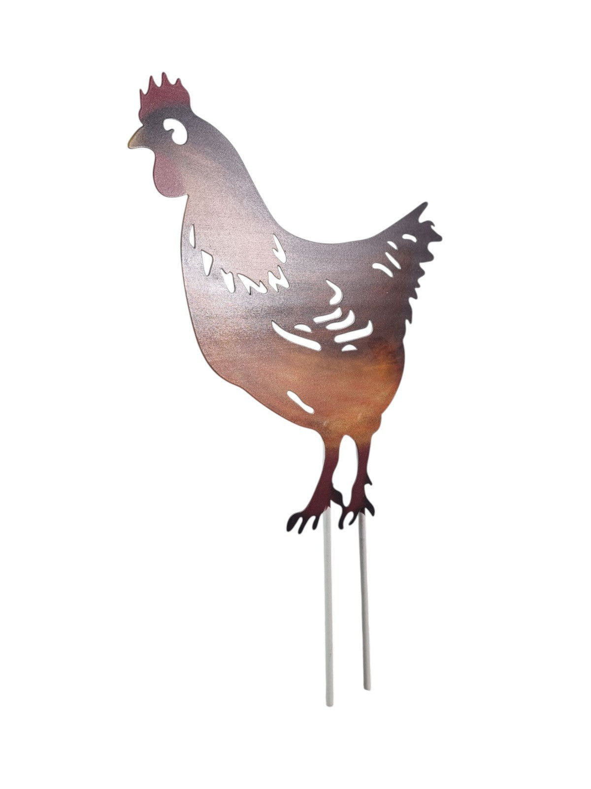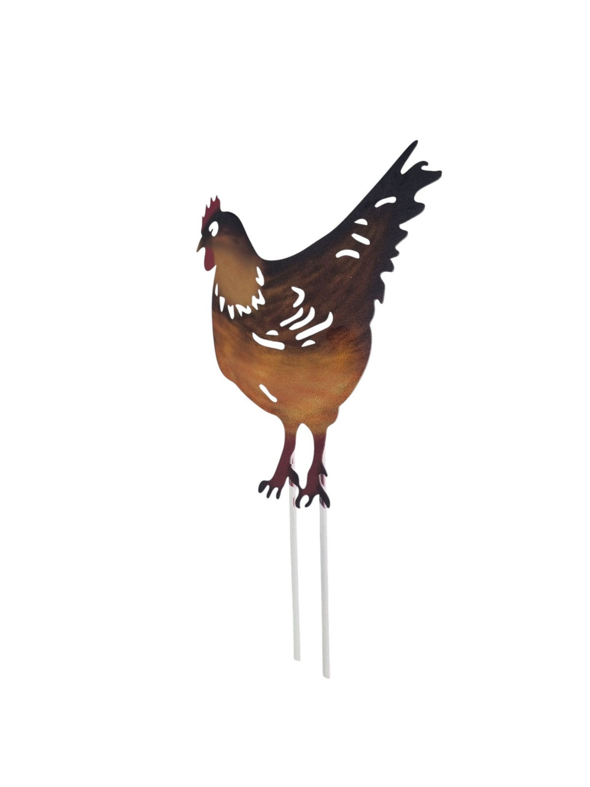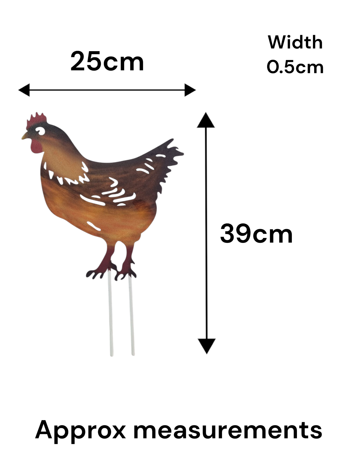 Colourful Hen Chicken Stake Garden Lawn Decor Brown Metal Decoration Farm Gift