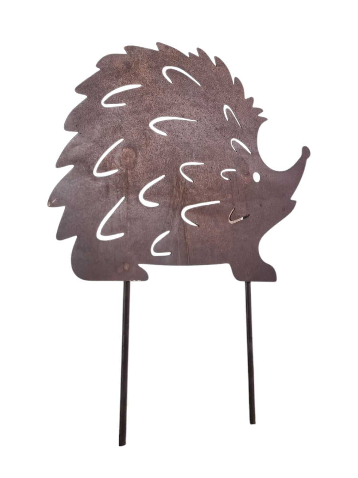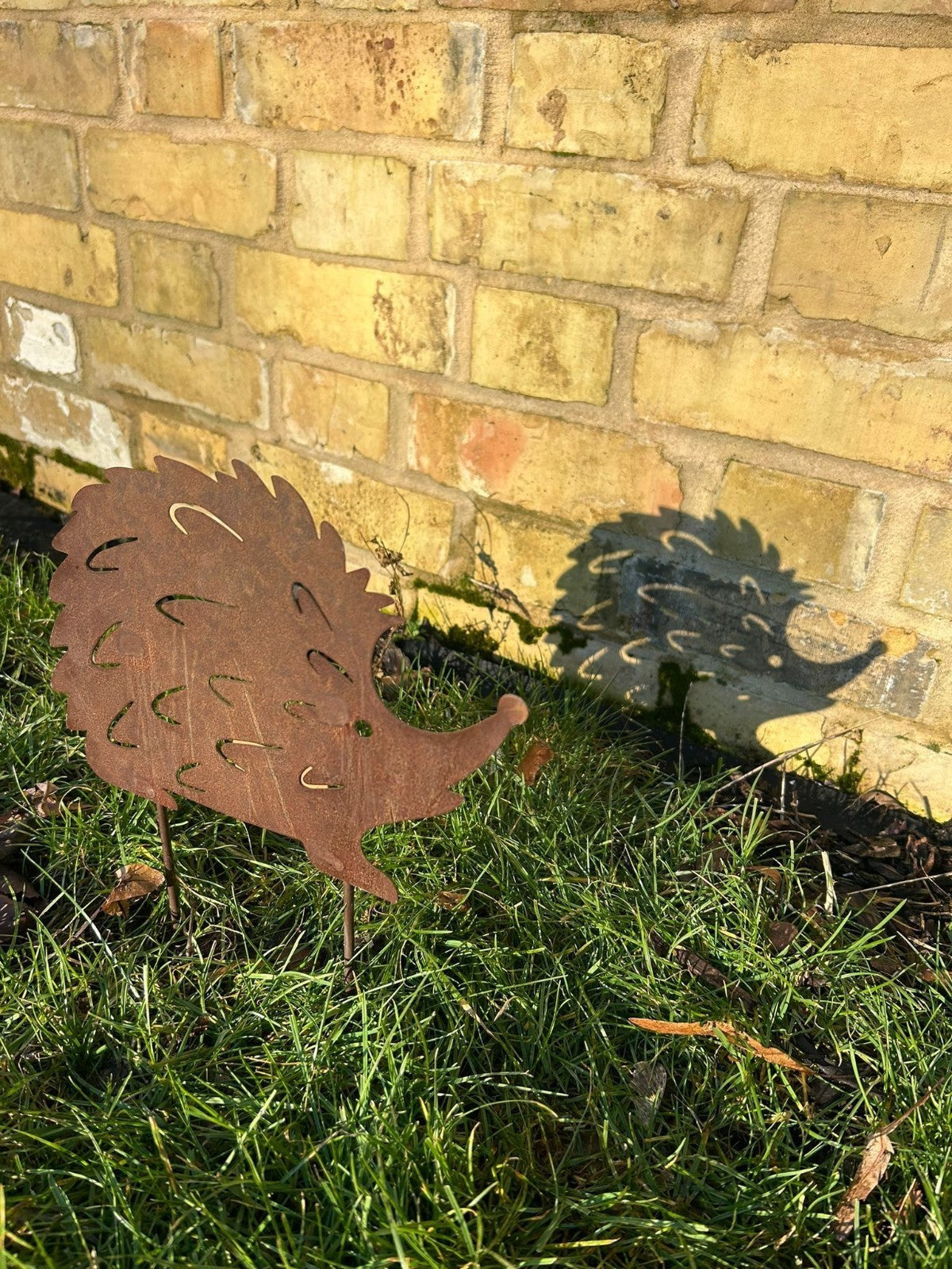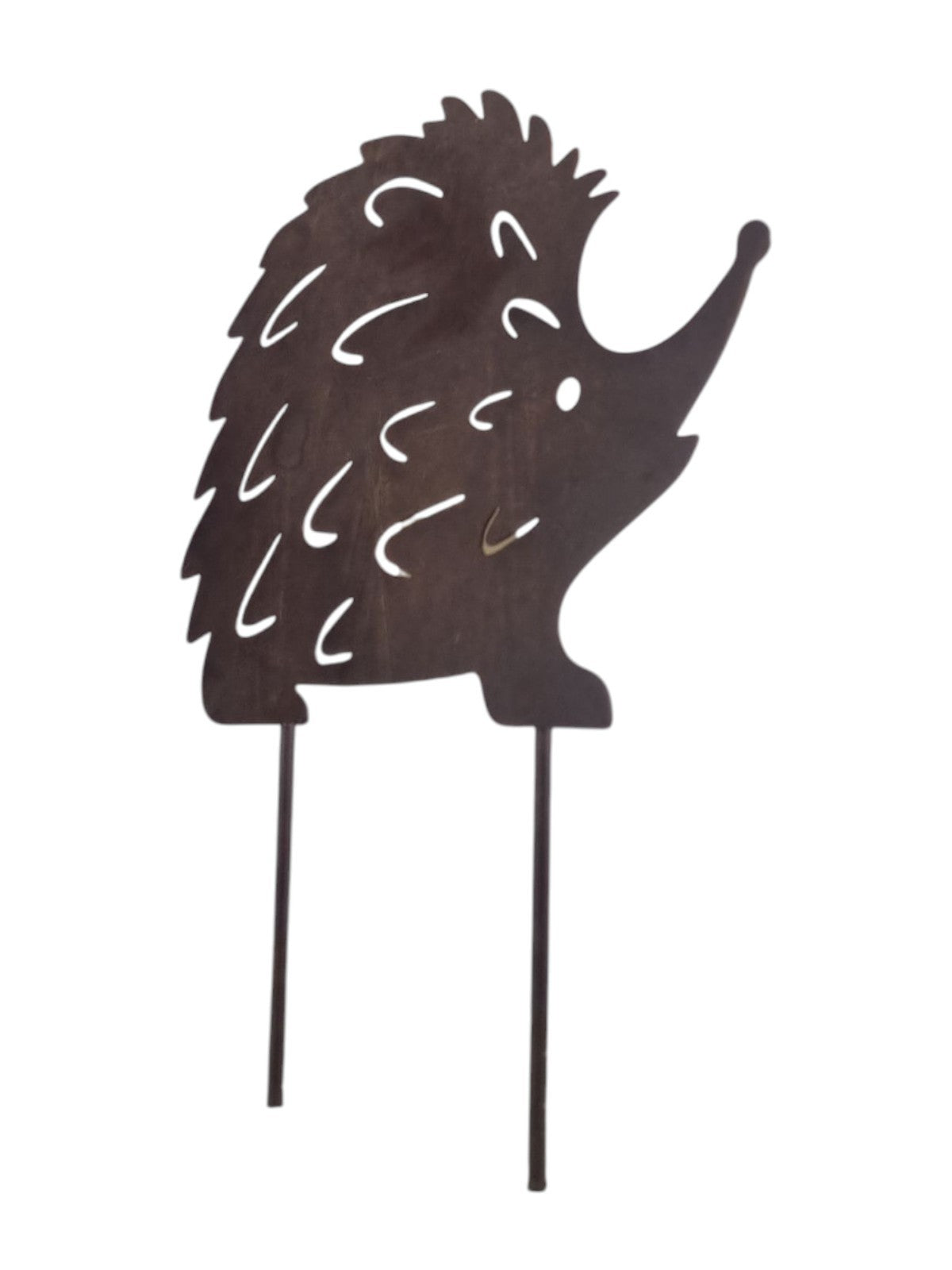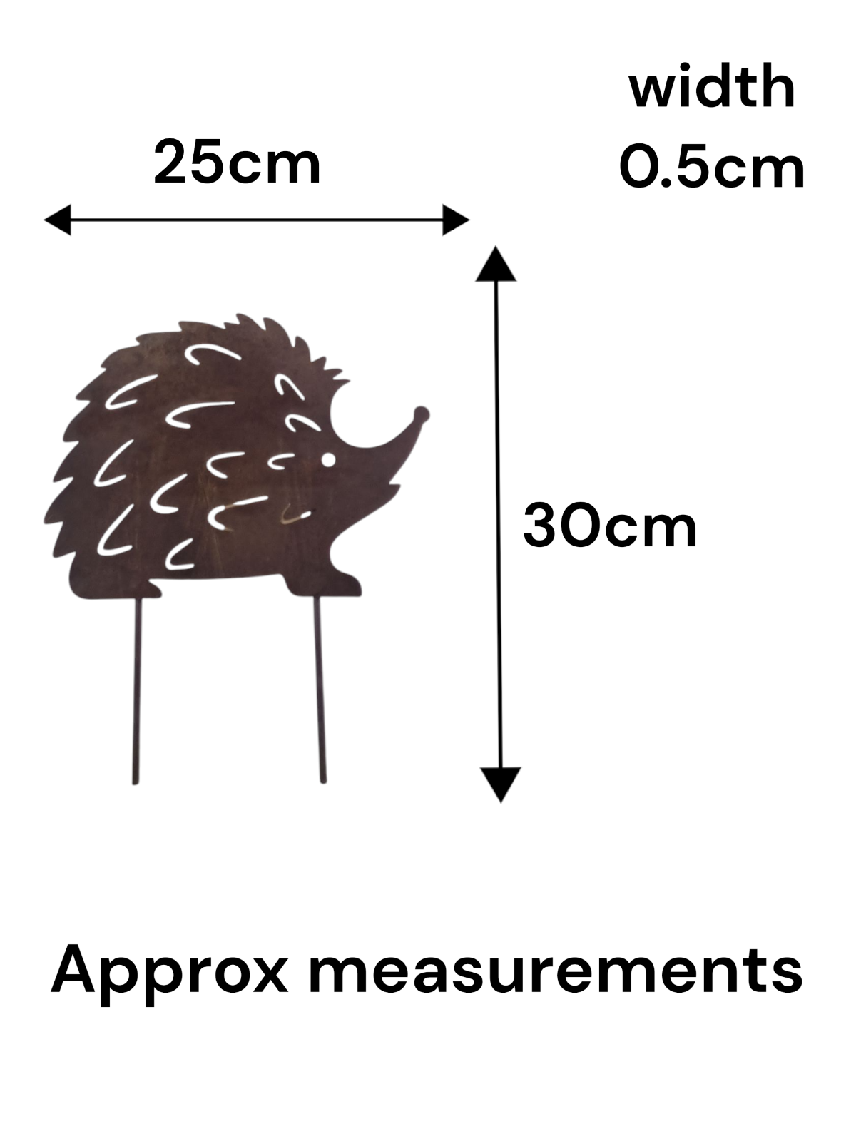 Rustic Hedgehog Stake Garden Lawn Decor Brown Metal Decoration Woodland Gift