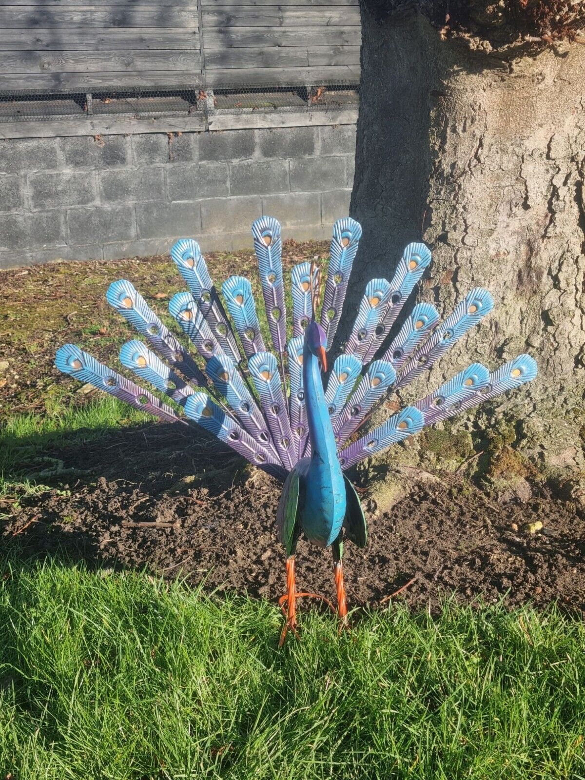 Tail Up Decorative Peacock Bird Animal Metal Garden Giftware Ornament