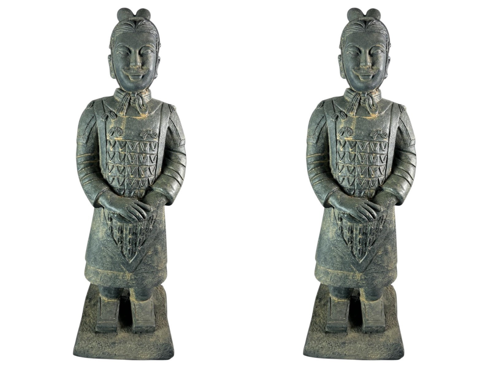 Standing Warrior Resin Terracotta Effect Grey Aged Garden Statue Ornament Garden