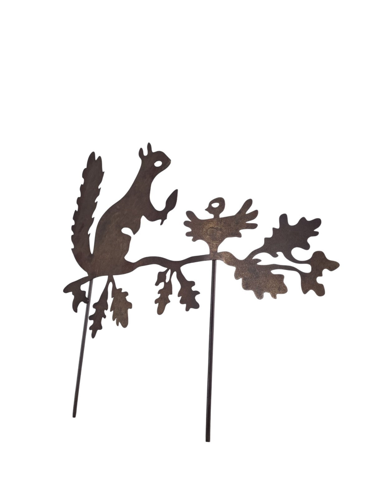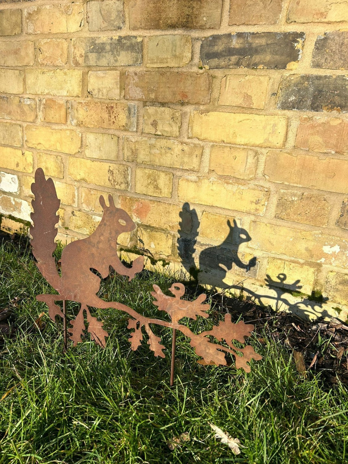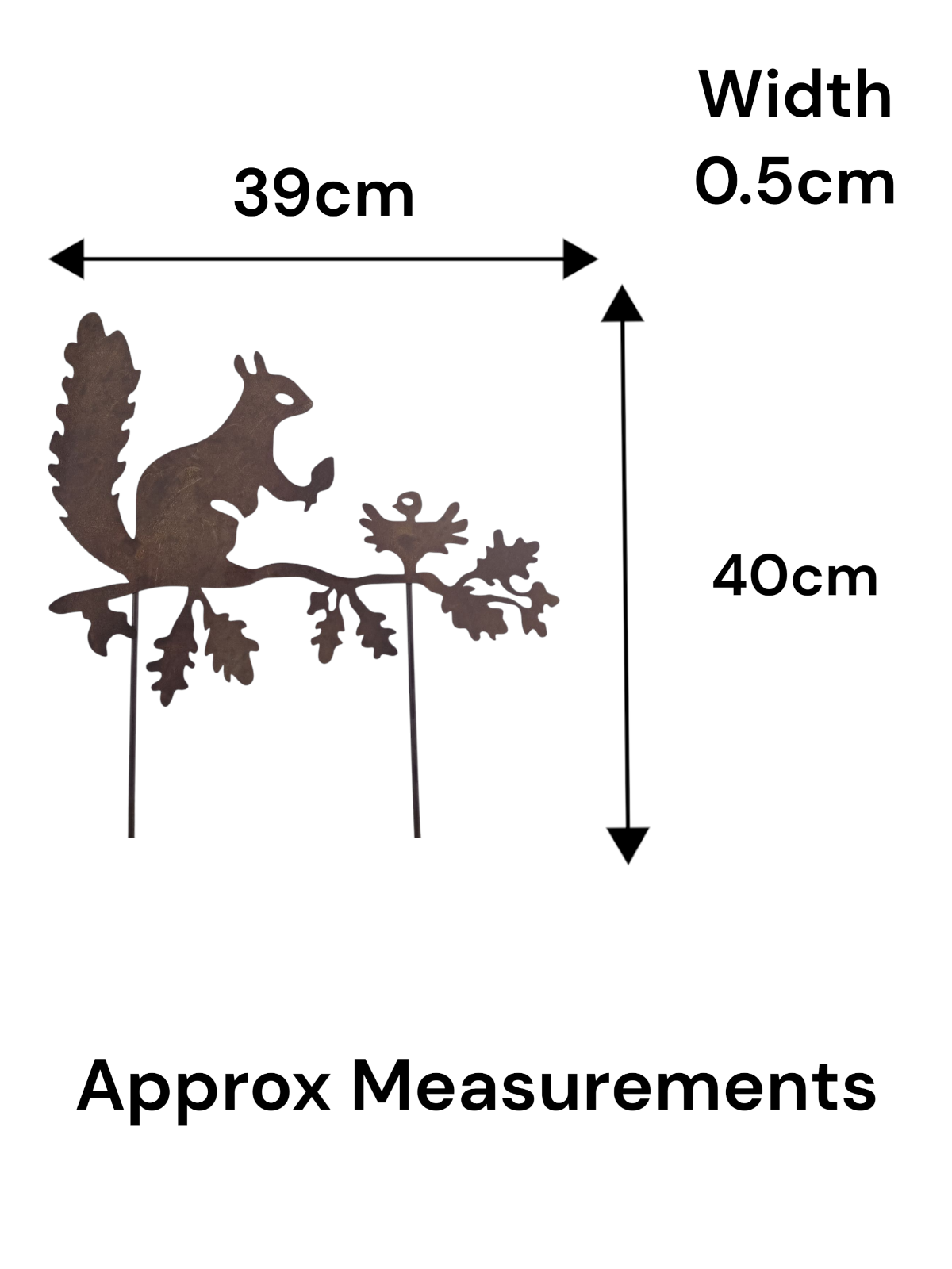 Squirrel Rustic Stake Garden Decor Brown Metal Woodland Gift Lawn Decoration