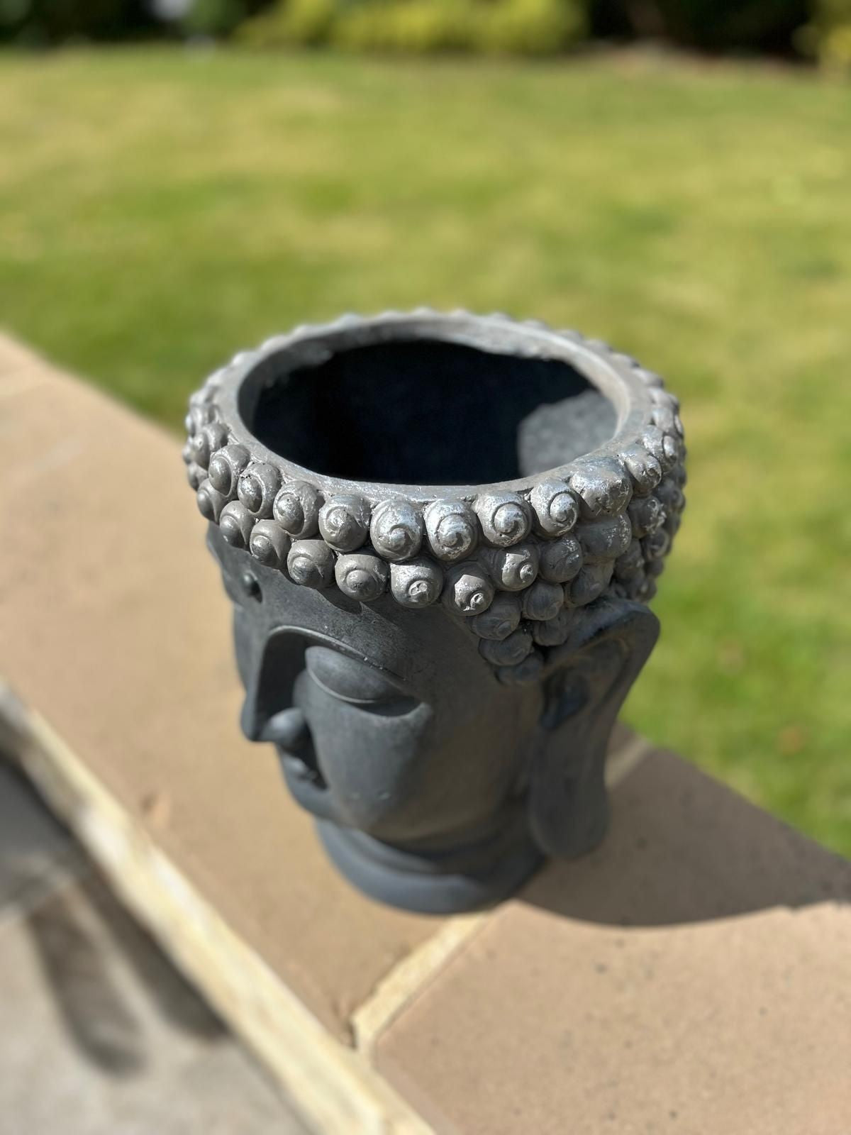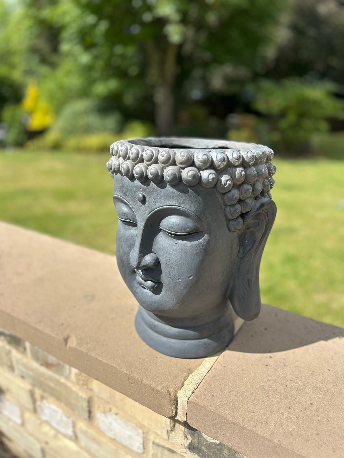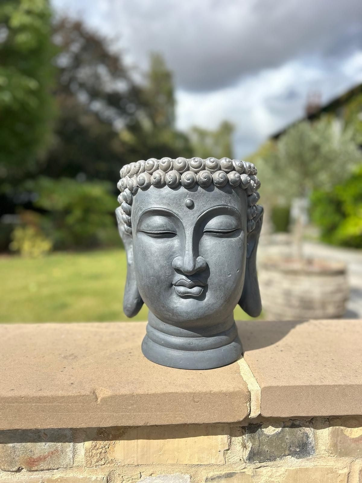 Buddha Head Garden Grey Stone Effect Pot Planter Decorative Gift