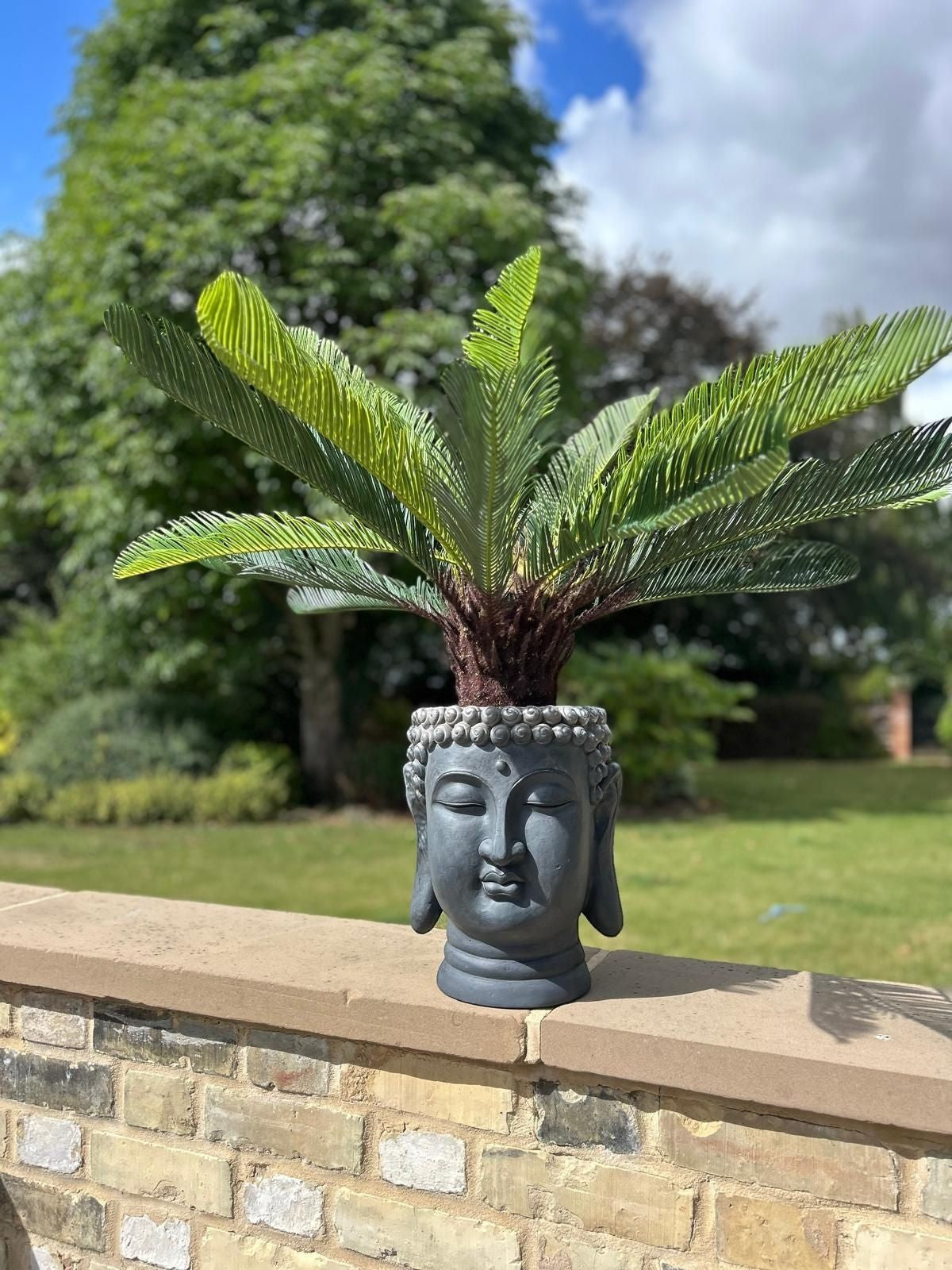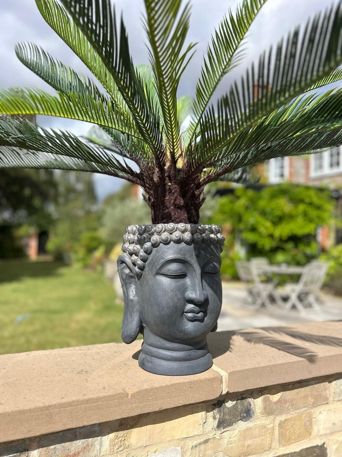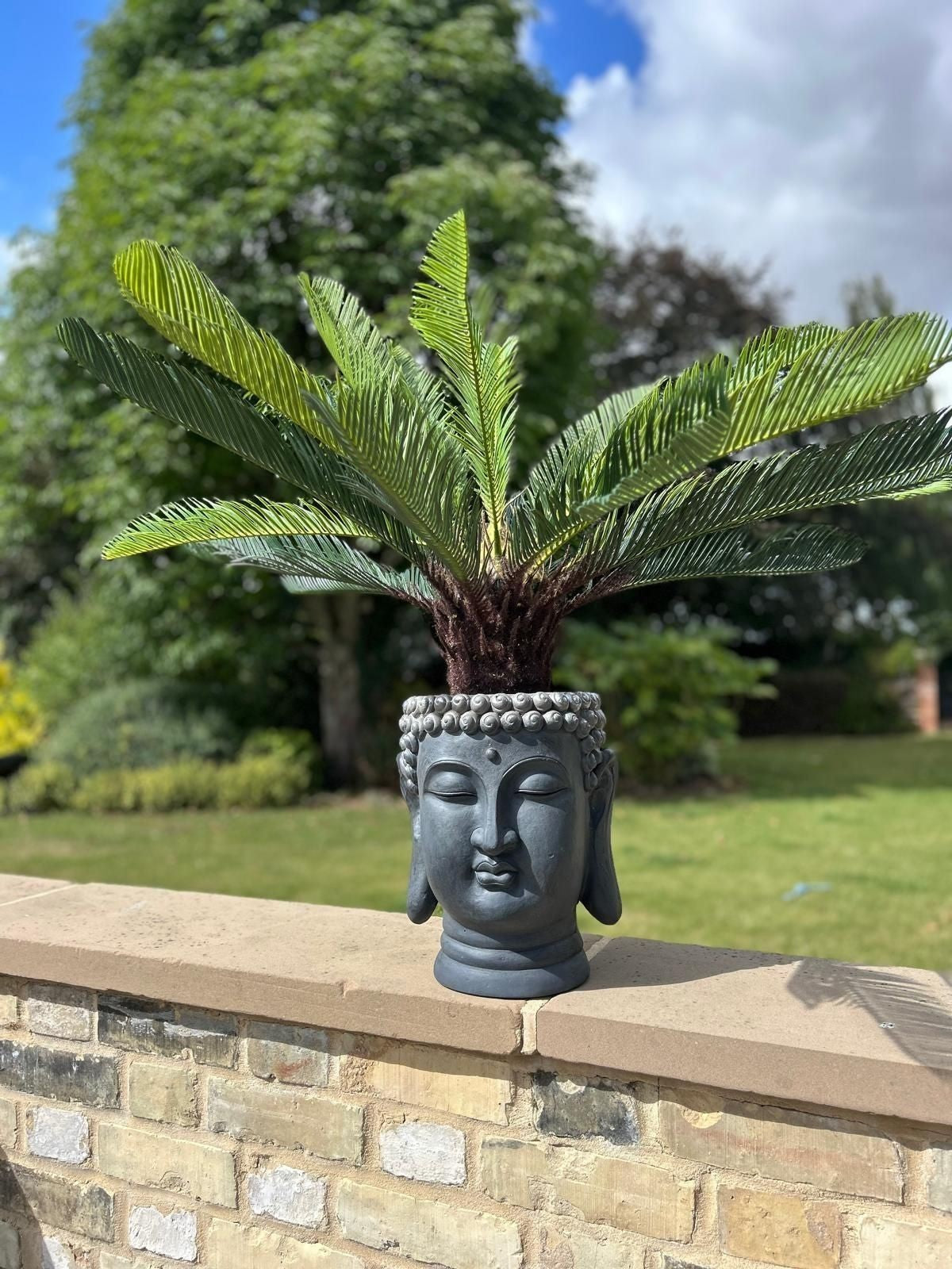 Buddha Head Garden Grey Stone Effect Pot Planter Decorative Gift