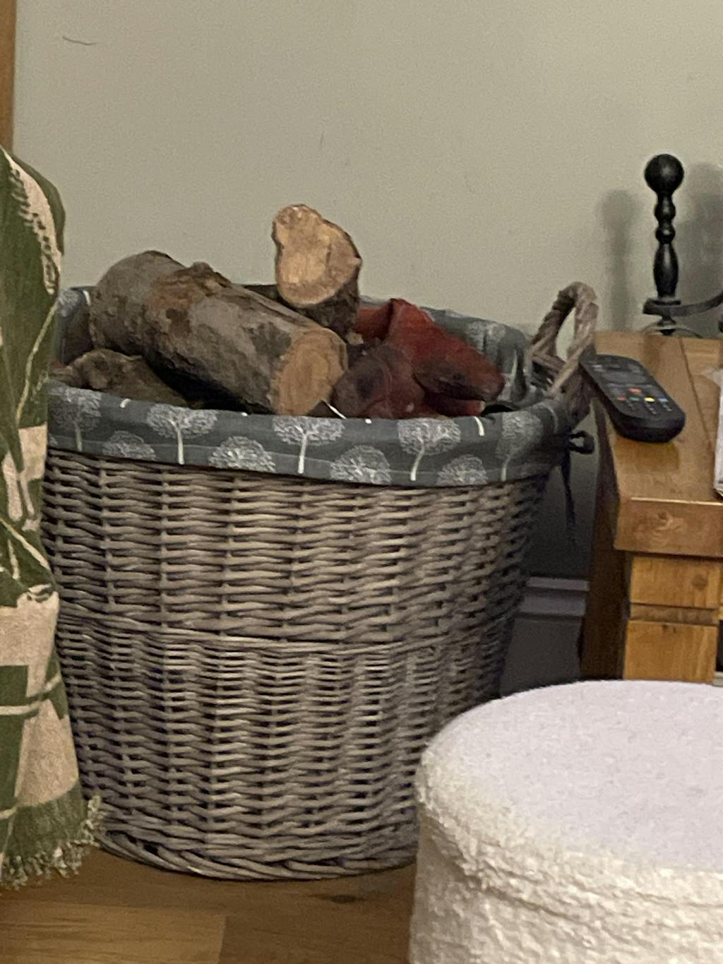Large Grey-wash Wicker Mulberry Tree Lined Log Home Tidy Laundry Storage Basket