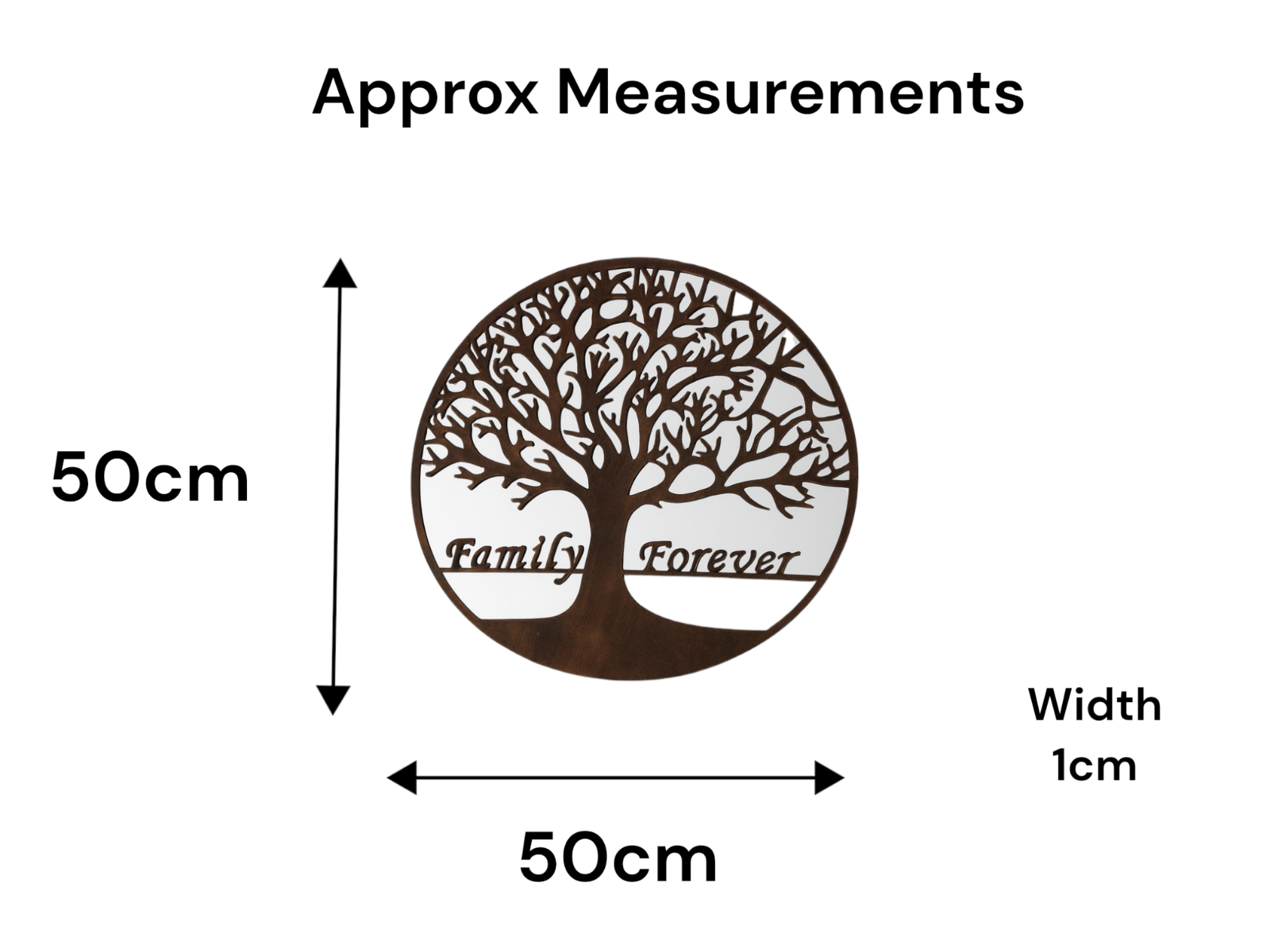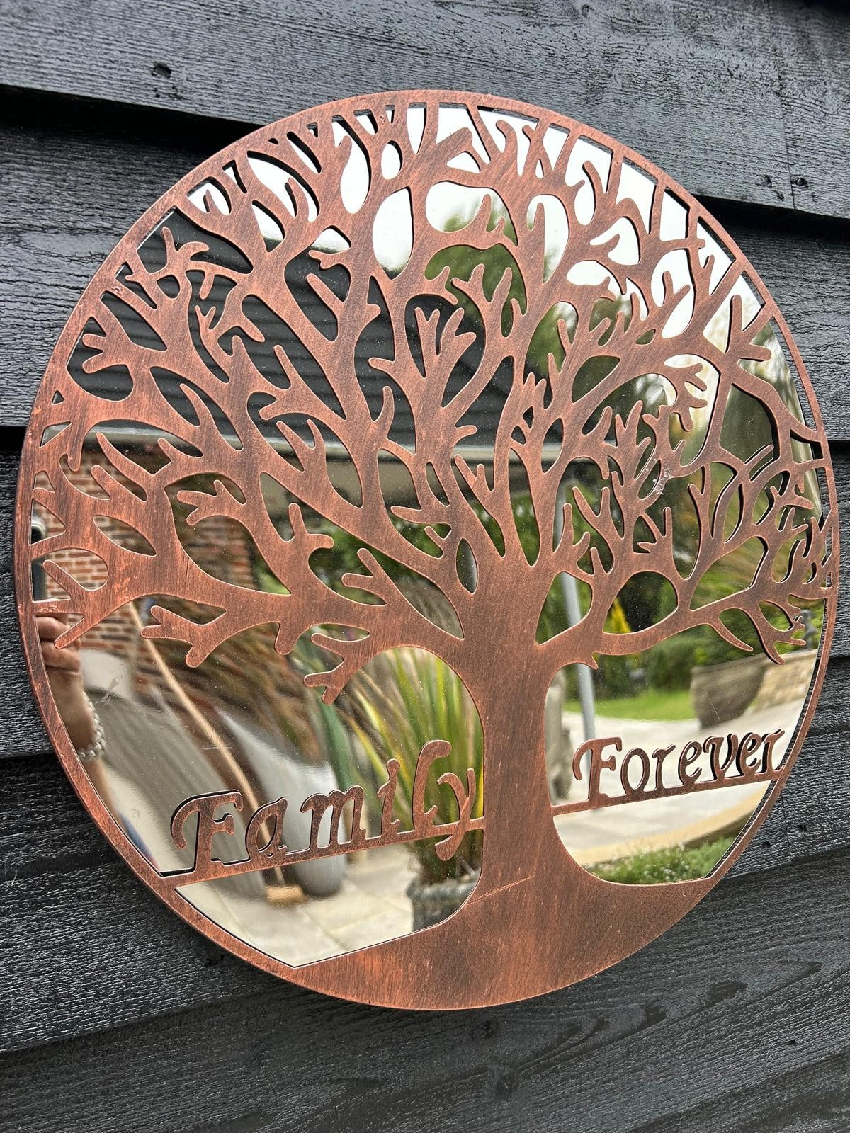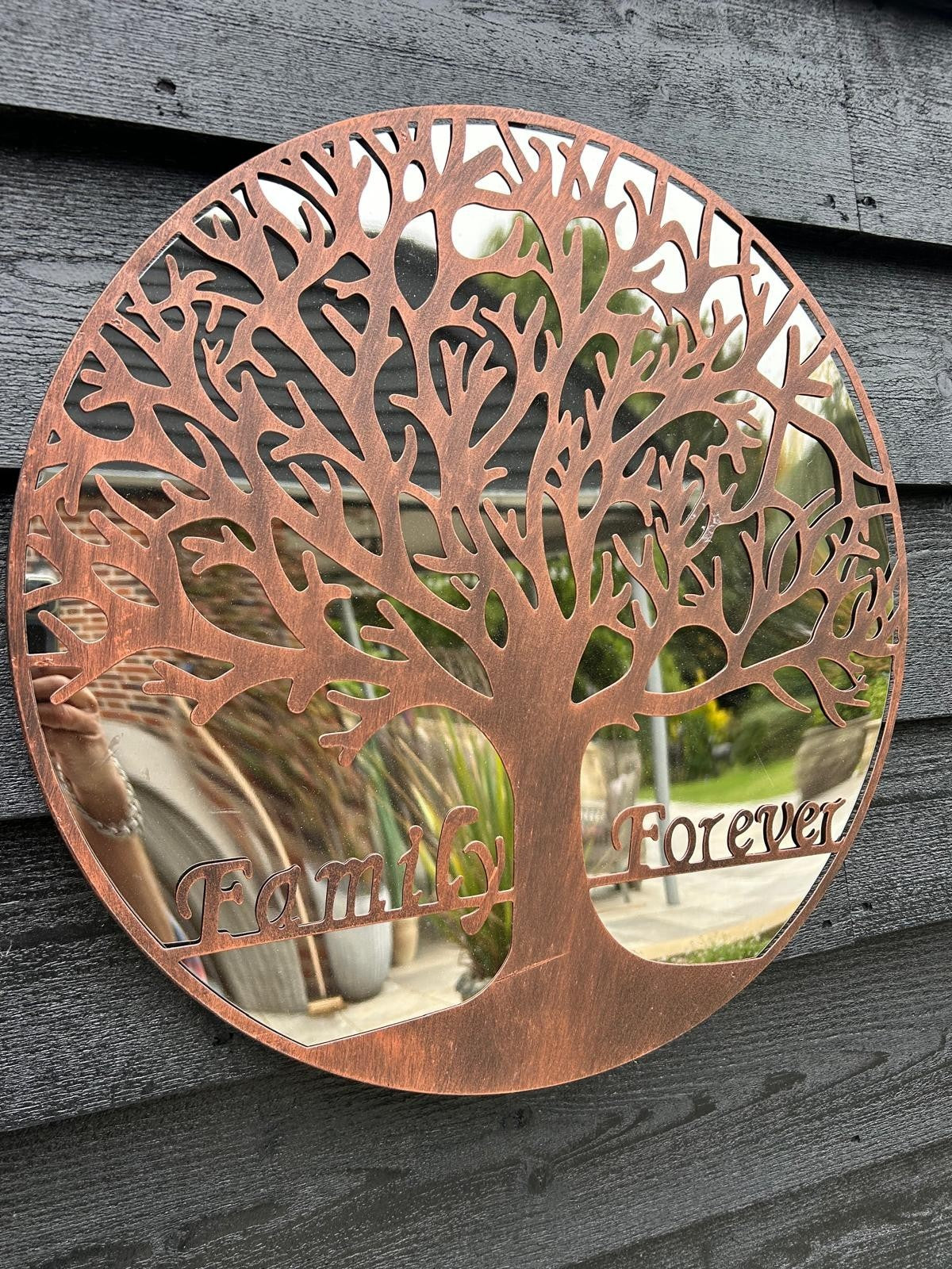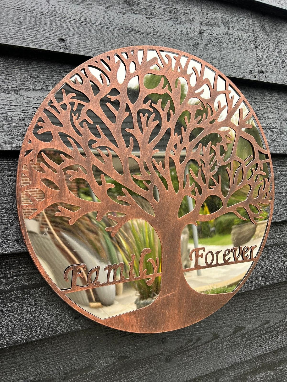 Large 50cm Mirrored Wall Art Bronze Tree of Life 'Family Forever' Garden Decor