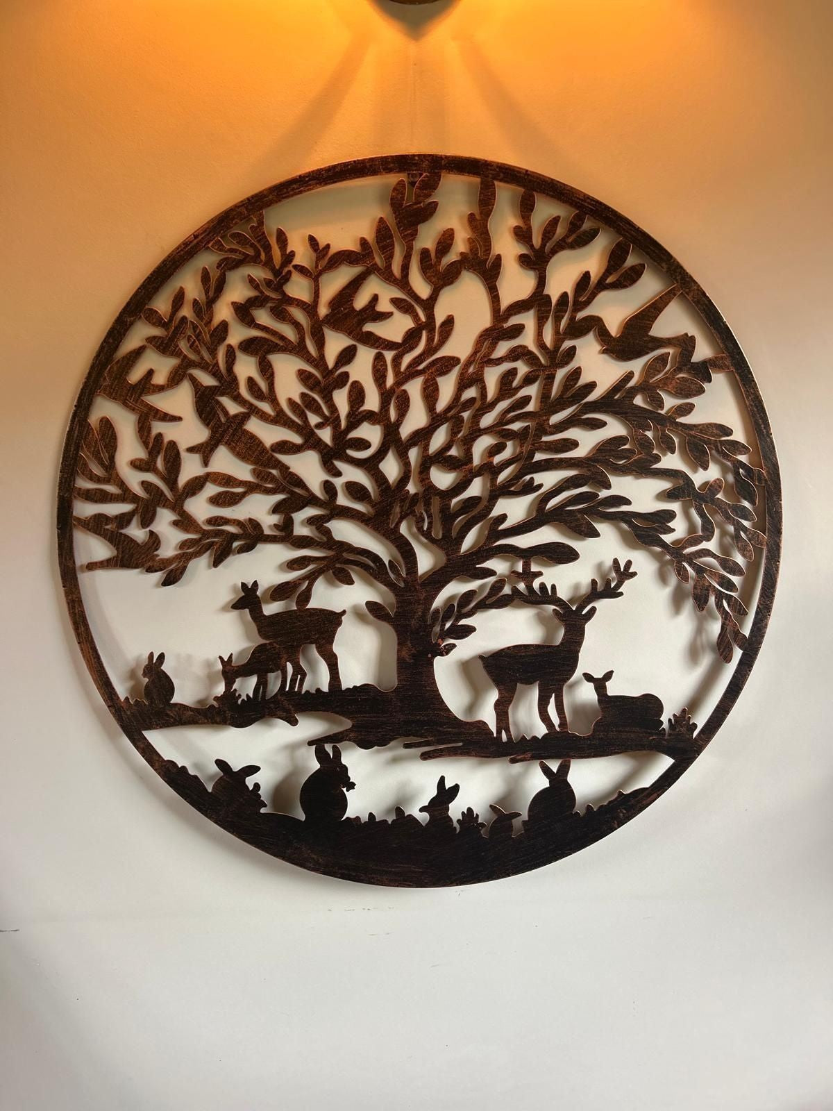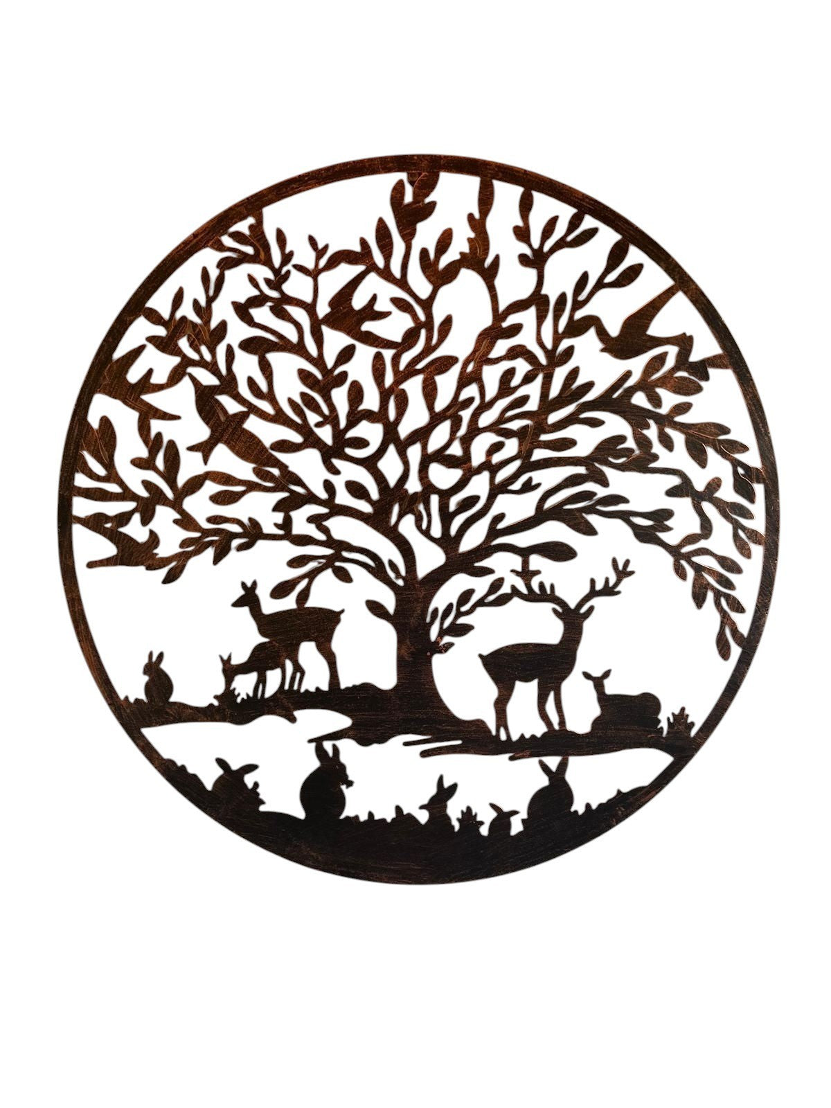 Bronze Woodland Tree Of Life Metal Garden Outdoor Wall Art Plaque 50cm Diameter