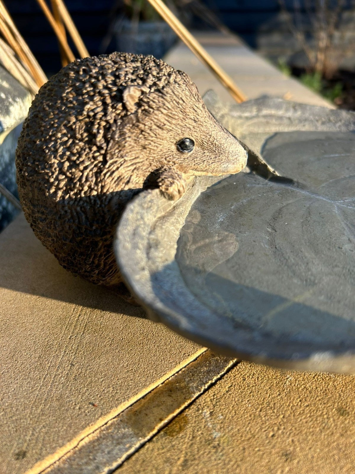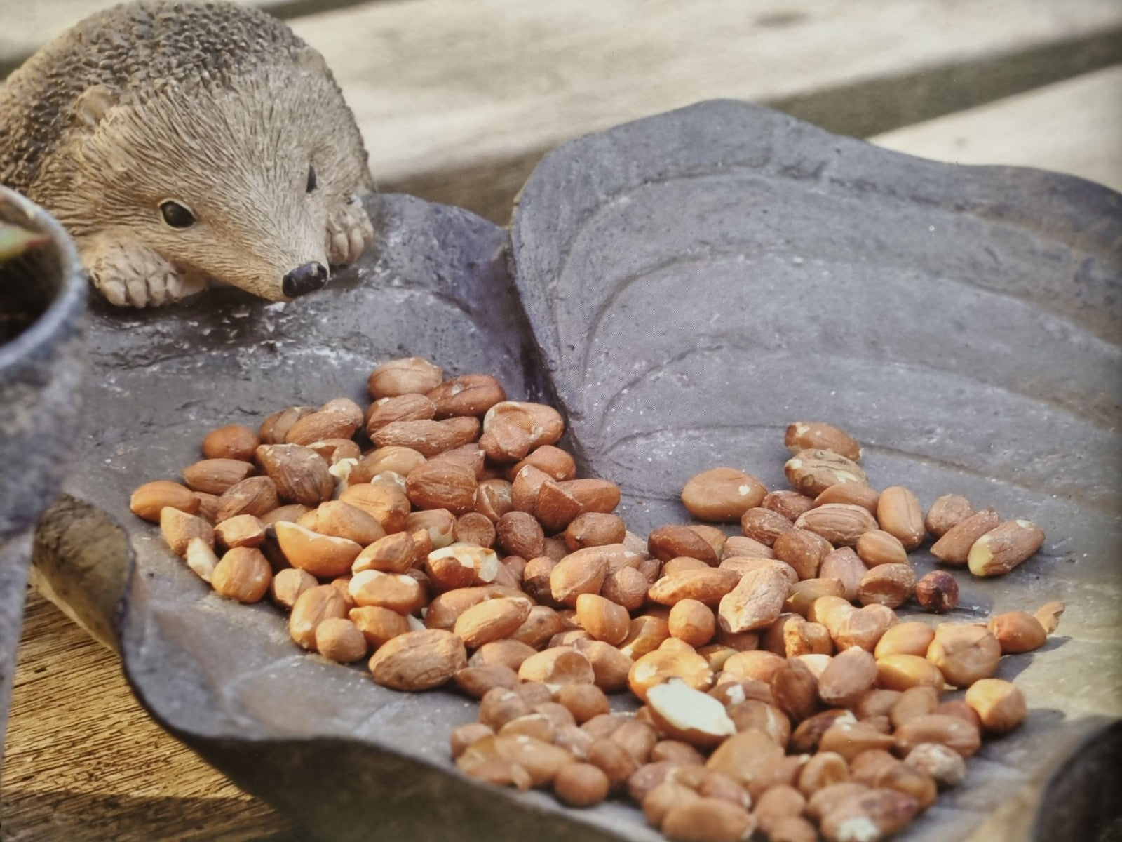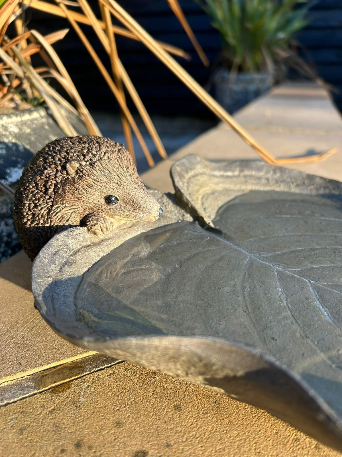 Resin Hedgehog Leaf Bowl Bird Bath Feeder Seed Nut Birds Garden Gift Ornament