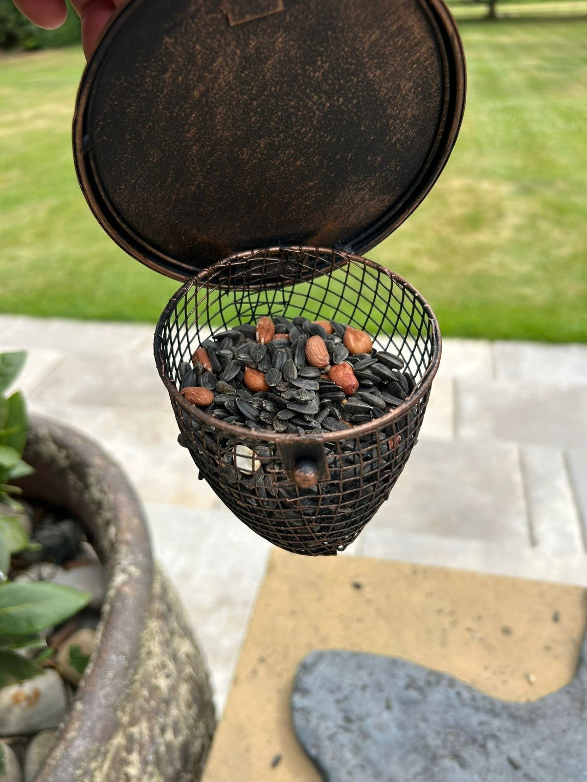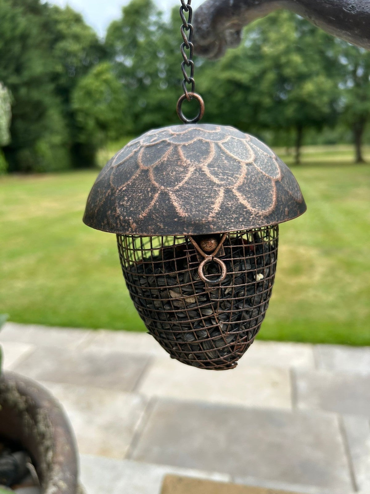 Birdfeeder Hanging Acorn Peanuts Nuts Holder Feeder Birds Bronze Effect Garden