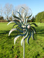 Verdigris Twin Wheel Metal Wind Garden Spinner Stake Windmill Decoration Gift