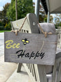 Bee Happy Wooden Garden Sign Hanging Plaque Notice Gift Love Nature Bumblebee